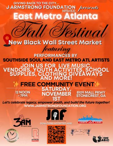 Join the J Armstrong Foundation and South Side Soul at the East Metro Atlanta Fall Festival on November 1, 2025, at the New Black Wall Stree...